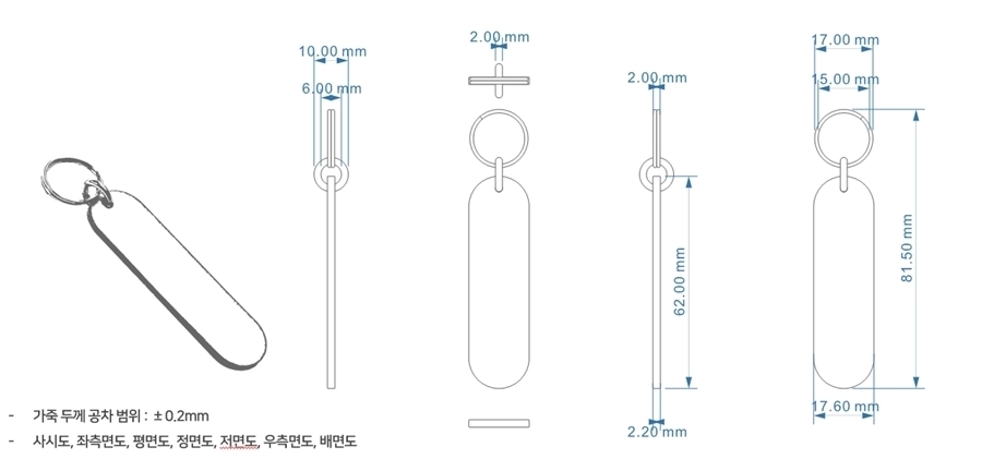 텍스트 각인은 한면에 두줄까지 각인 가능