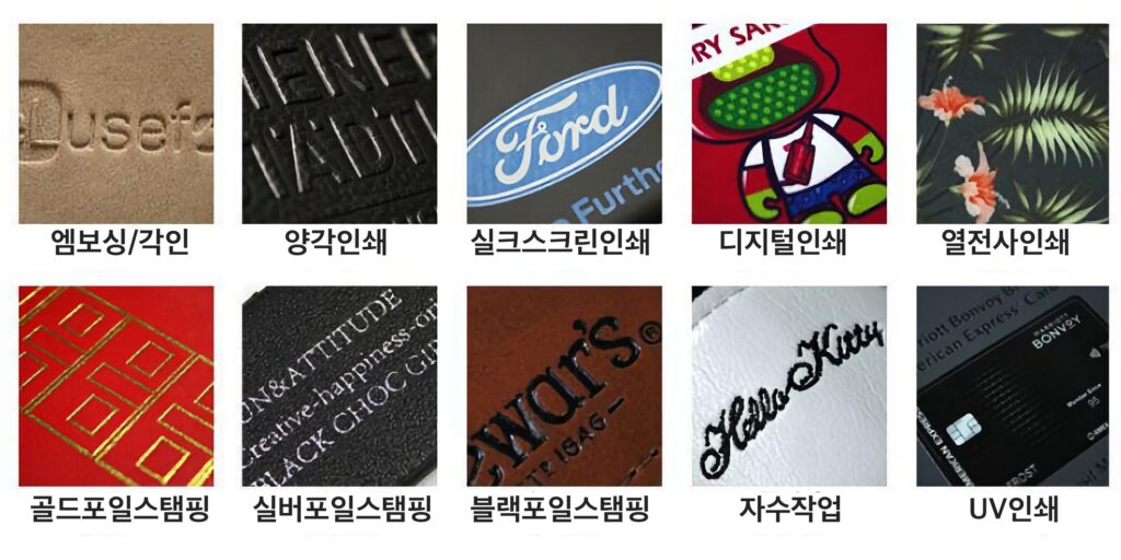 압인, 열전사, UV 인쇄 등 다양한 각인 방식을 통해 기업의 개성과 브랜드를 표현할 수 있습니다.