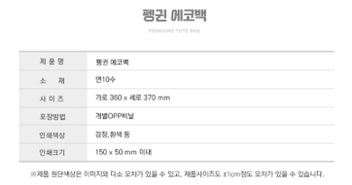 단체, 제작주문에 잘 어울리는 에코백 제작이 가능한 바로 귀염뽀짝 펭귄 에코백입니당~