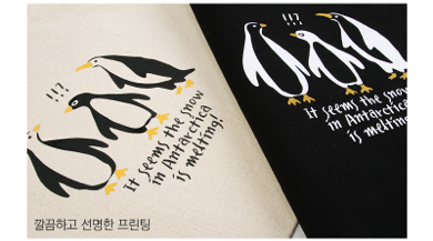 펭귄 에코백은 미색과 검정색이 있는데요. 정면에는 세마리의 펭귄들이 프린트되어있어요