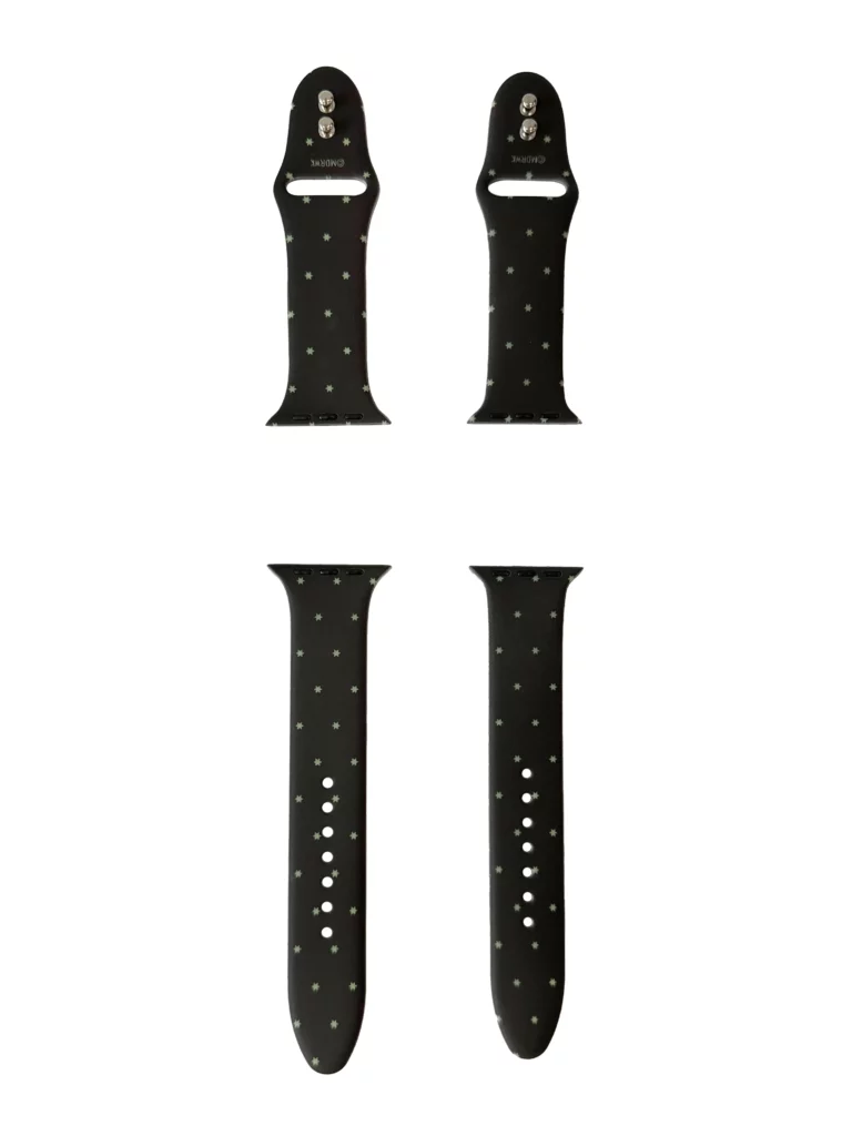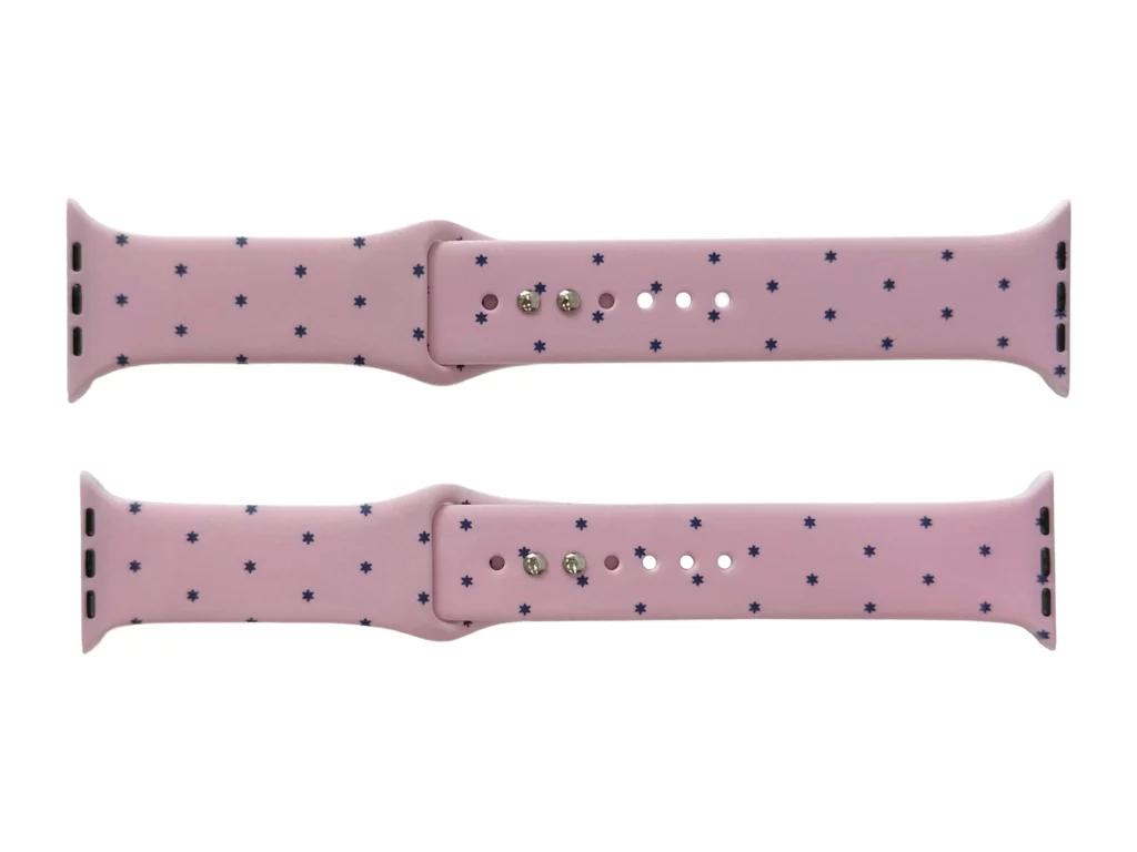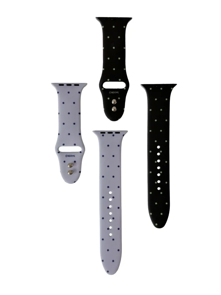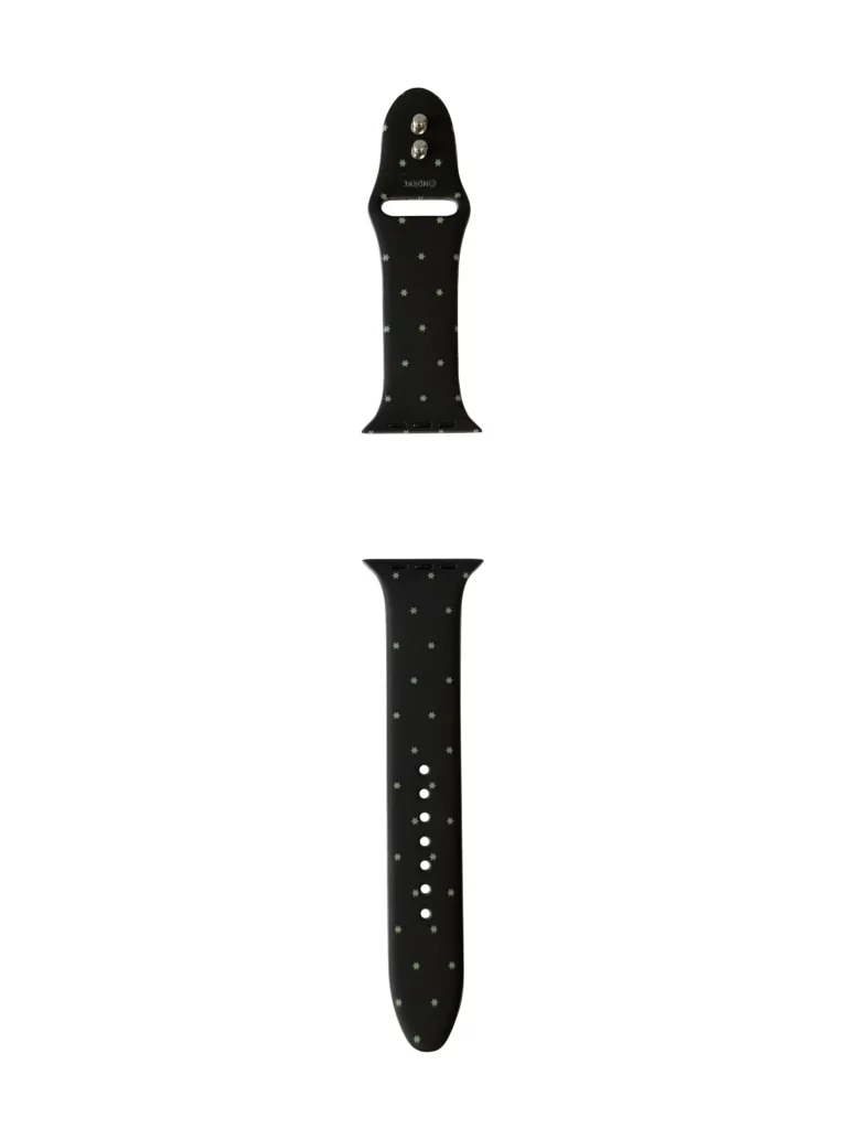 특별 주문 제작한 애플워치 스트랩은 별도트 패턴을 프린트하여 심플하면서도 눈에 뜁니니다. 별 모양 도트 장식은 작은 크기에도 귀여우면서 시선을 사로잡는 효과가 있습니다.