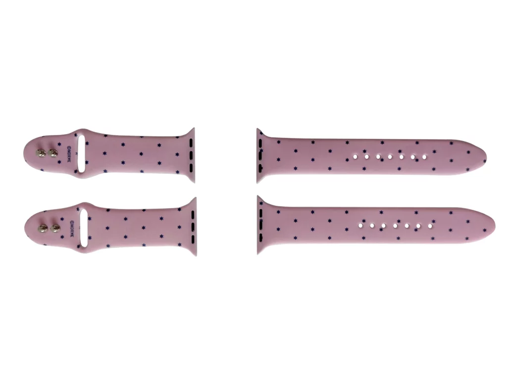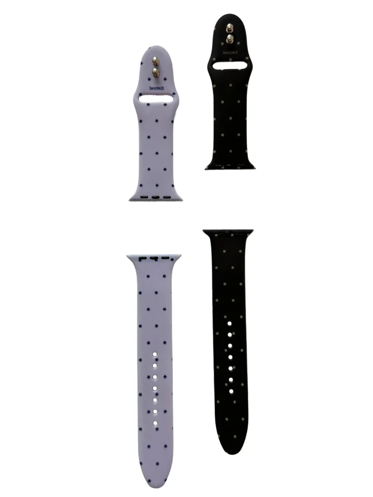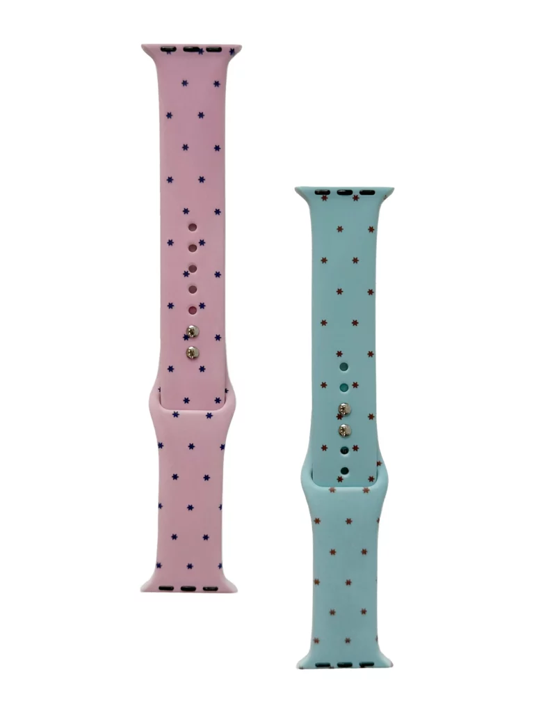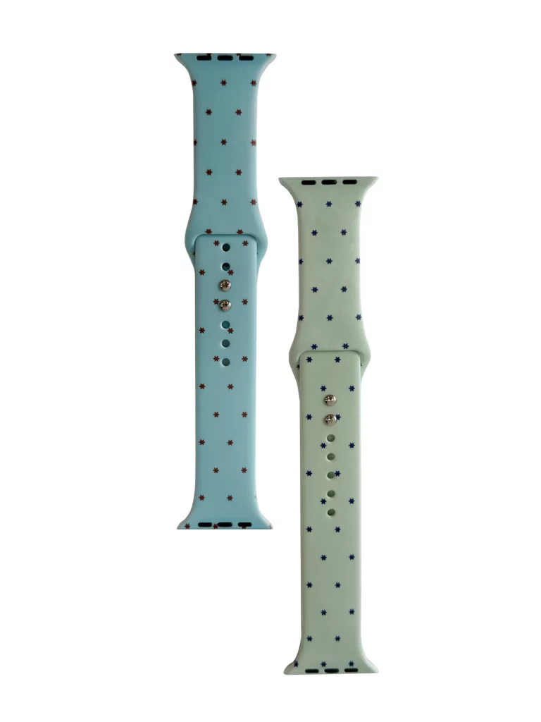특별 주문 제작한 애플워치 스트랩은 별도트 패턴을 프린트하여 심플하면서도 눈에 뜁니니다. 별 모양 도트 장식은 작은 크기에도 귀여우면서 시선을 사로잡는 효과가 있습니다.