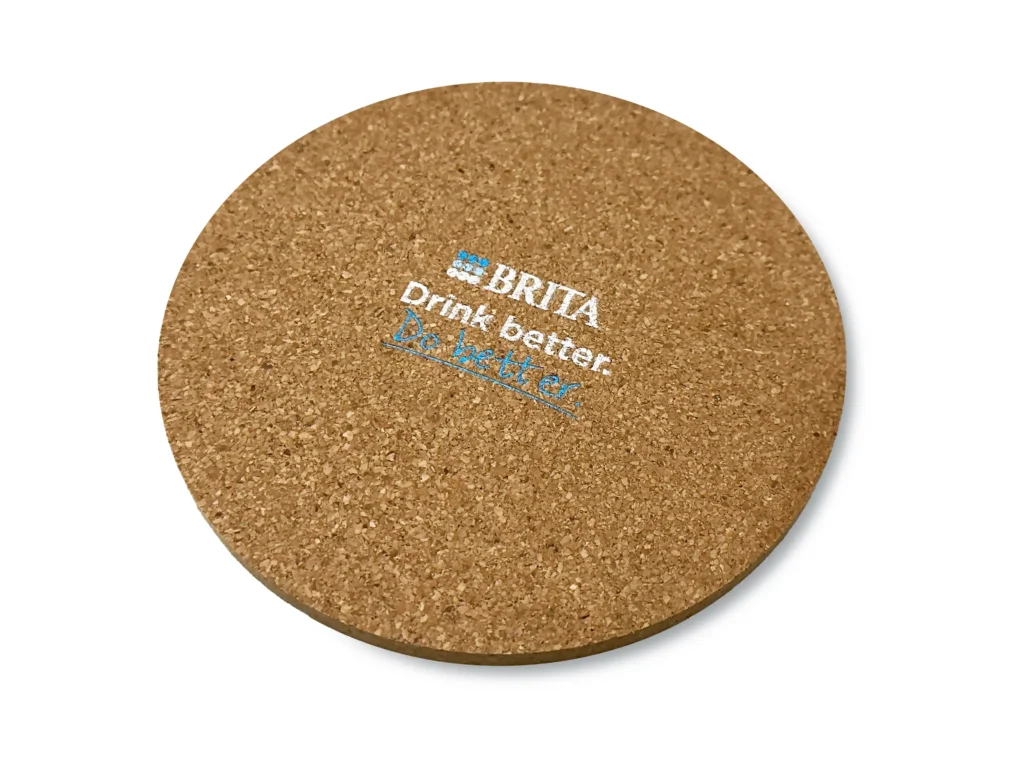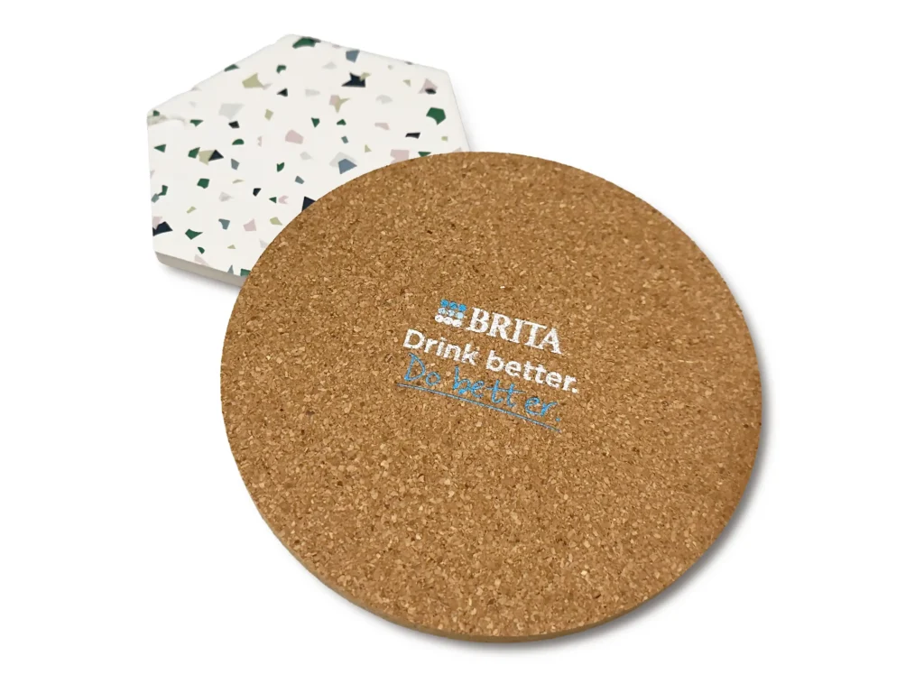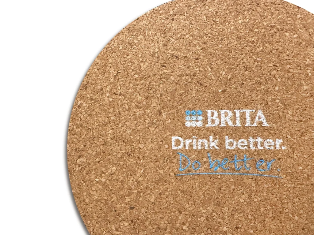 BRITA 브리타 티코스터 제작처럼 책상 위에서 오래 쓰이는 굿즈는 노출 시간이 길어 마케팅 효율이 좋아집니다.