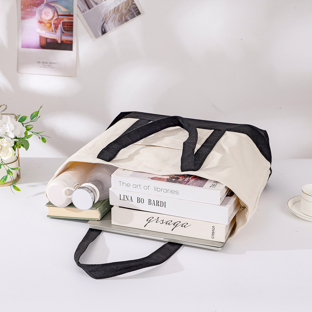 트레이더스조 스타일의 투톤 에코백은 과한 장식 없이도 배색만으로 존재감을 만들고, 로고 인쇄가 들어가면 더 또렷하게 메시지를 전달합니다. 기업 프로모션, 오프라인 이벤트, 박람회 웰컴키트, 브랜드 굿즈로 제작했을 때 “받고 끝”이 아니라 자연스럽게 재사용되는 스타일을 목표로 설계된 타입입니다.